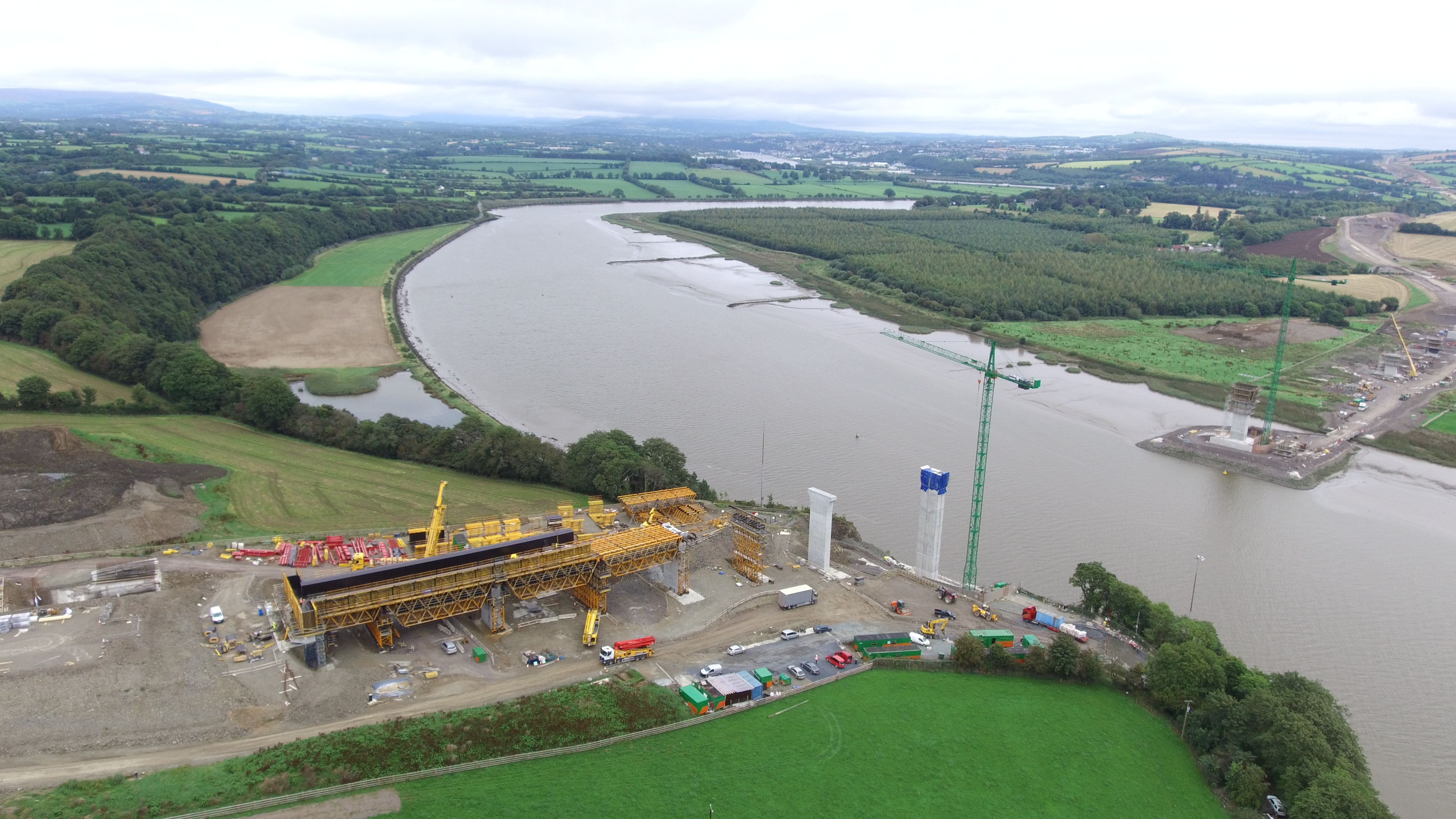 AGL Consulting carried out several temporary works designs associated with construction of the River Barrow Bridge element of the N25 New Ross Bypass PPP Scheme. These included the Inner Haul Road and temporary platforms for Piers 5 to 8 on the eastern floodplain of the River Barrow, the Sea Levee Protection Area and the Piled Access Jetty on the banks of the river and the Impermeable Working Area on the soft tidal river mudflats to facilitate construction of the pile foundations and pylon for Pier 4. AGL also designed the Temporary Falsework foundations on both sides of the River Barrow which will be used to support construction of the bridge deck.